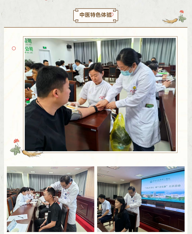 中醫(yī)專(zhuān)家們認(rèn)真地為每一位員工把脈問(wèn)診,仔細(xì)觀察員工的面色、舌苔,耐心詢(xún)問(wèn)癥狀與生活習(xí)慣,針對(duì)頸椎病、腸胃不適、夏季常見(jiàn)病等不同病癥,量身定制開(kāi)具了“個(gè)性化健康處方”,為員工們的康復(fù)與養(yǎng)生指明了方向。
