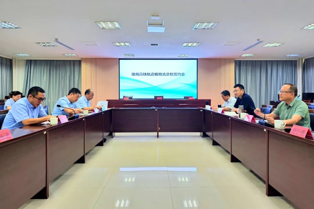 6月12日,雄商高鐵軌道板物流總包簽約儀式在高速鐵建裝備公司舉行。山東高速軌道交通集團(tuán)黨委副書(shū)記、董事、總經(jīng)理陳浩,國(guó)鐵濟(jì)南局集團(tuán)貨運(yùn)部副主任許鋼參加簽約儀式并致辭。國(guó)鐵濟(jì)南局濟(jì)南鐵路物流中心、高速鐵建裝備公司等有關(guān)人員參加活動(dòng)。