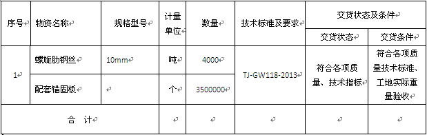 山東高速軌道設備材料有限公司預應力鋼絲及錨固板采購項目(項目名稱)已由山東高速軌道交通集團有限公司批準,項目業(yè)主為山東高速軌道設備材料有限公司,項目資金自籌,項目出資比例為 100%,采購人為山東高速軌道設備材料有限公司。項目已具備采購條件,現(xiàn)采取競爭性談判方式進行公開采購。