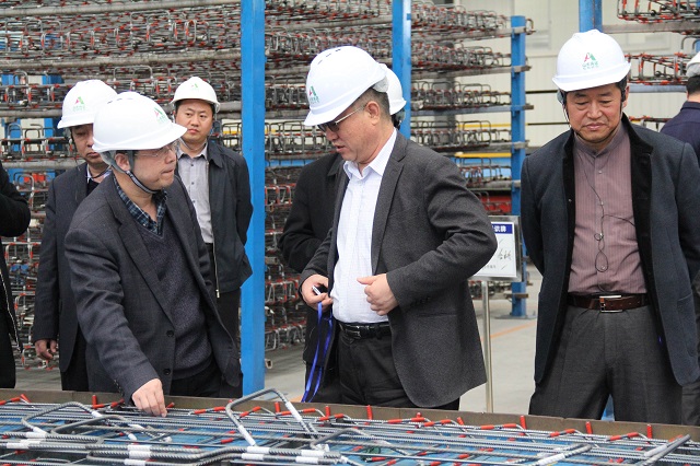 王思軍一行首先參觀了公司二十年發(fā)展史圖片展、軌枕產(chǎn)品展示、軌枕生產(chǎn)流水線、軌枕車間辦公室。隨后,又來到高鐵軌道板場區(qū),參觀了軌道板臺位式車間生產(chǎn)線、軌道板流水機(jī)組法生產(chǎn)線、軌道板存儲貨場、標(biāo)準(zhǔn)化試驗(yàn)室。通過參觀交流,全面了解了公司的發(fā)展歷程、產(chǎn)品種類、生產(chǎn)工藝和產(chǎn)品市場經(jīng)營形勢等情況。