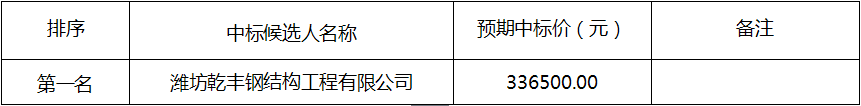 軌枕廠區(qū)骨料存放區(qū)鋼結(jié)構(gòu)拱棚制作安裝工程于2017年5月26日在山東高速軌道設(shè)備材料有限公司3樓會議室公開詢價(jià),目前詢價(jià)工作已完成,現(xiàn)將詢價(jià)結(jié)果公示如下,接受社會各界監(jiān)督: