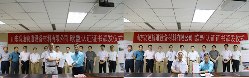 2018年7月23日,山東高速軌道設(shè)備材料有限公司歐盟認(rèn)證證書(shū)頒發(fā)儀式在濟(jì)南舉行。歐洲標(biāo)準(zhǔn)化委員會(huì)波蘭軌道研究院授權(quán)中波基金會(huì)董事長(zhǎng)田青,為軌道設(shè)備材料公司頒發(fā)了混凝土枕歐盟認(rèn)證證書(shū)。